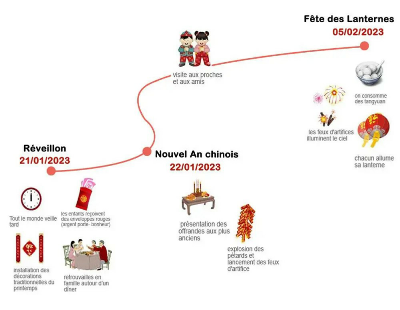 Le Nouvel An chinois 2023 se fêtera le 22 janvier 2023. Selon l'astrologie chinoise, l'année 2023 sera l'année du Lapin , qui débutera le dimanche 22 janvier 2023 et touchera sa fin le vendredi 9 février 2024.